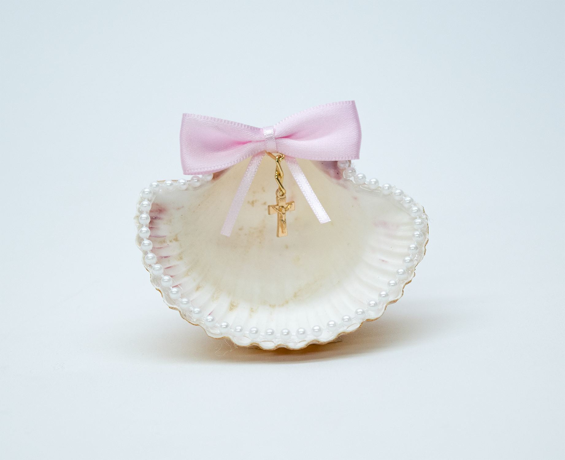 Incluye una suave toalla, una concha para verter el agua bendita y una vela, elementos que simbolizan la pureza y la luz, esenciales en cualquier ceremonia de bautizo. Cada detalle ha sido cuidadosamente seleccionado para crear una experiencia memorable tanto para los padres como para los invitados.